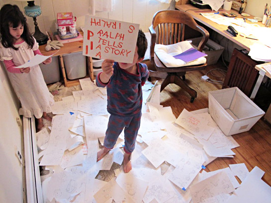 A lot of my day is dealing with the repercussions of allowing my kids to play with flour/shaving cream/wall paint/Styrofoam peanuts/mud/food coloring/recycling/make-up/matches… They just started kindergarten so I now have an extended period of time to work for the first time. (And good luck to their teachers.)