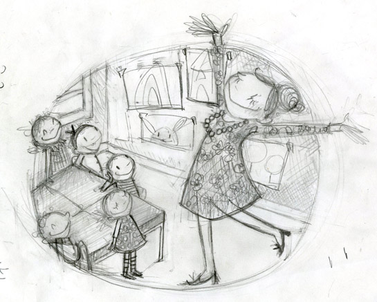 It was finding an agent that was the major breakthrough for me. When I was a teacher, I submitted a couple of stories to several agents with very some awkward little line drawings, not even laid out as a book. (I hadn’t even thought about how a page turns!) To my amazement, one agent wrote me back and told me to call her. The first thing she asked on the phone was: “Tell me honestly, have you ever taken a drawing class?” I said no. And she said, “Well, it really shows… but I think you can do this.”