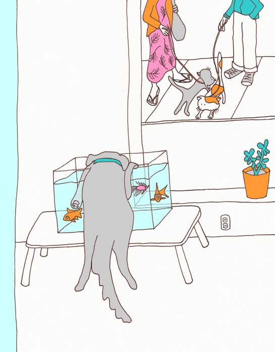 I’m usually very tied to pen and paper but had been meaning to experiment a bit with digital color. I needed to get out my rut, my endless lists of unfinished planned projects. It was a clean slate, a chance for me to work on something with a quick turnaround. Here are some of my submissions on the following themes: Autumn, Back to School and Cats and Dogs–bet you can’t figure out which is which!