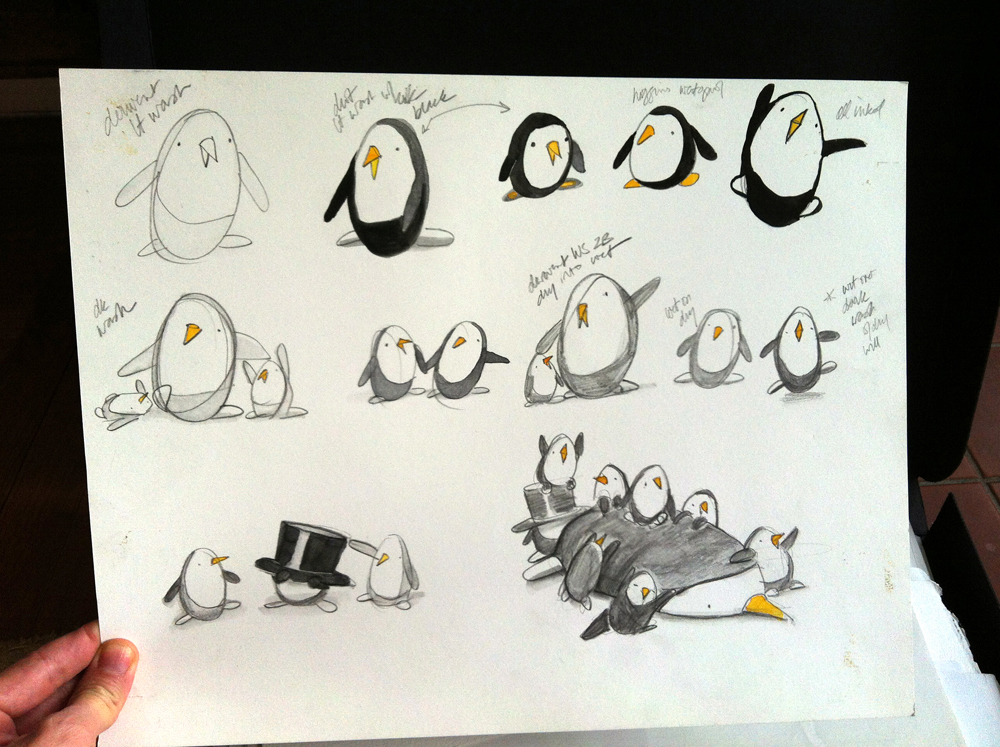 penguins in pencil