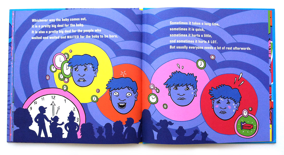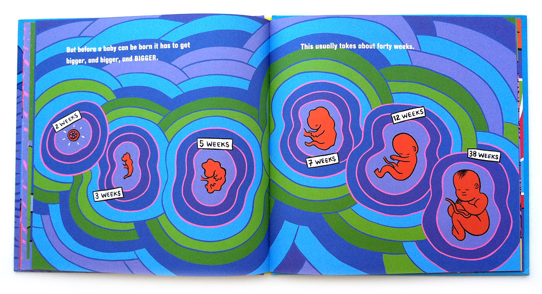 The other problem I anticipated running into was the language and the illustrations. It is written and illustrated so that it works for any kind of family. So that means that we don’t talk about mommies and daddies (even though we see lots of parents). It means that when we see a pregnant belly the body isn’t necessarily read as a woman’s body (although it easily can be). It means that there is an opening in the text for parents to talk about miscarriages with an older child if they choose (although it’s not so explicit that they have to do that). These are all small things that a traditional publisher would have said no to, either because they didn’t understand what we were trying to do or they would be afraid it would confuse or offend people.