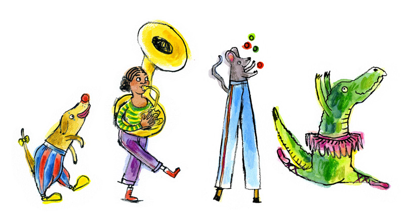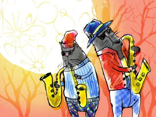 A couple of months ago, the awesome Brooklyn-based children’s band The Pop Ups contacted me, asking me if I wanted to illustrate their jazzy Halloween song Miss Elephant’s Gerald. There would be animals. Playing instruments. Wearing costumes. Oh yes, I was very interested.